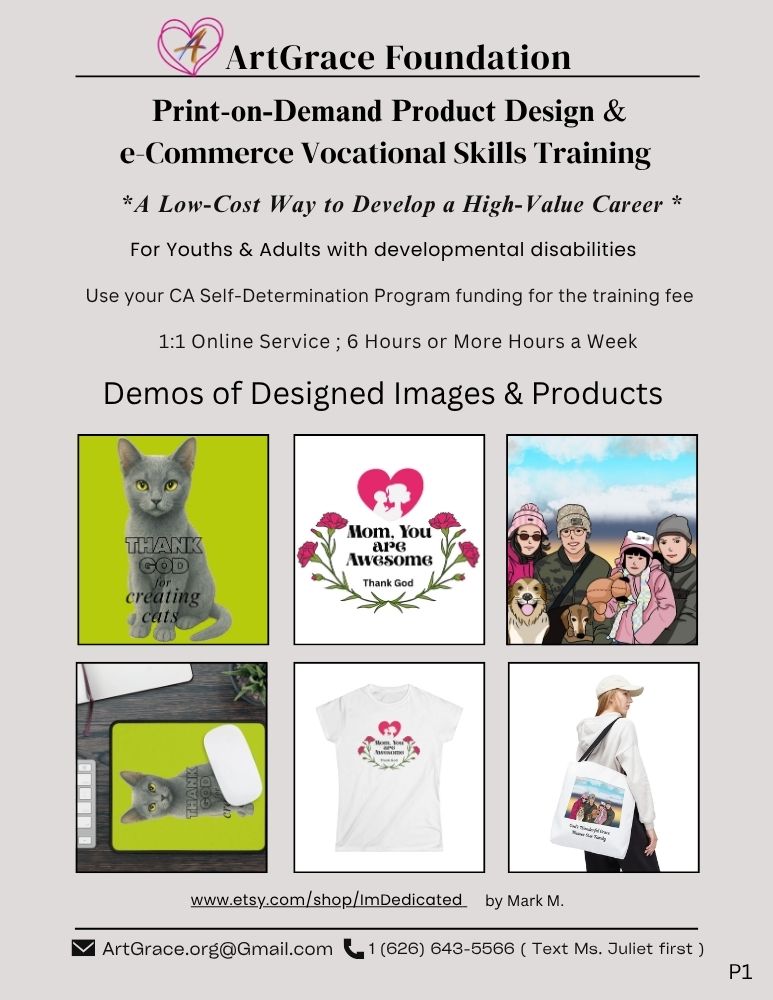 We are a certified Ritz FMS Service Provider of California’s Self-Determination Program (SDP), funded by the California Department of Developmental Services. We encourage parents to apply for SDP early so students can benefit from ArtGrace’s One-on-One Online / In-person Vocational Skill Training Programs.